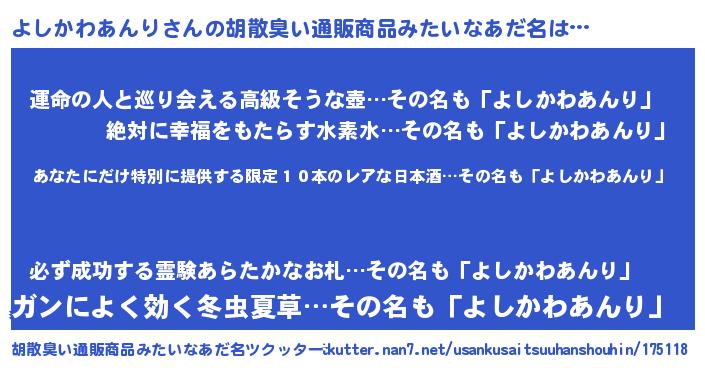 | 意味不明あだ名 | 『住所不定無職よしかわあんり(47歳)』 |