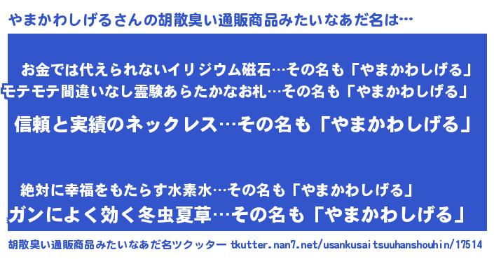| 意味不明あだ名 | 『とにかく怪しいやまかわしげる』 |