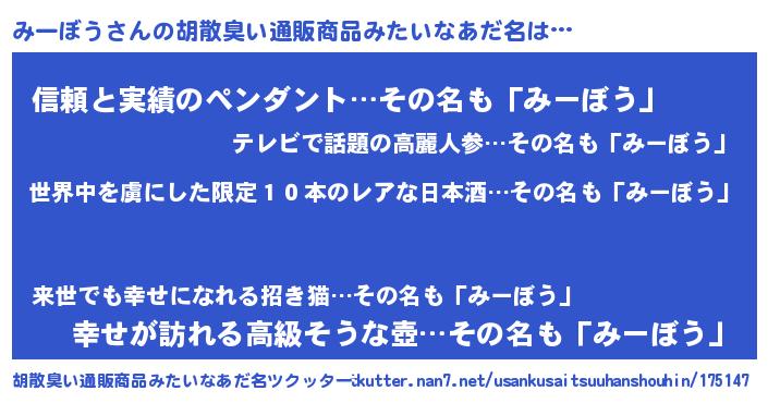| 意味不明あだ名 | 『住所不定無職みーぼう(43歳)』 |
