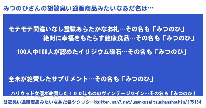 | ヘコむあだ名 | 『みつにゅー』『みつのひ(震え声)』 |
