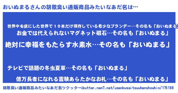 | 意味不明あだ名 | 『永久保存おいぬまる』『自称おいぬまる』 |