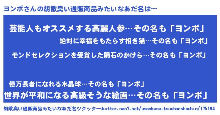 | ヒーロー風カッコイイあだ名 | 『天空の使者ヨンボ』『究極戦士ヨンボ』 |