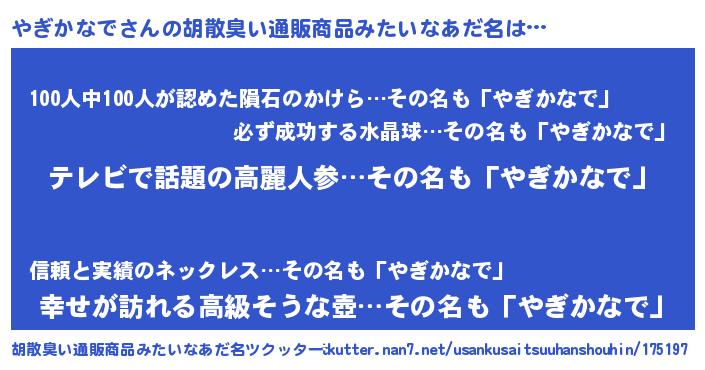 | ヘコむあだ名 | 『なまこ酢』『やぎっふぃ~』 |