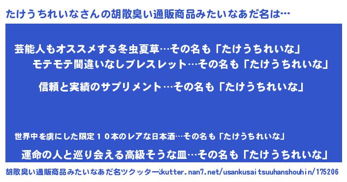 | ヘコむあだ名 | 『たけ太郎』『酢こんぶ』『たけもー』 |
