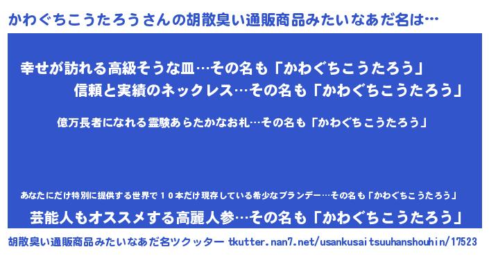 | 肩書あだ名 | 『かわぐちこうたろう御曹司』 |