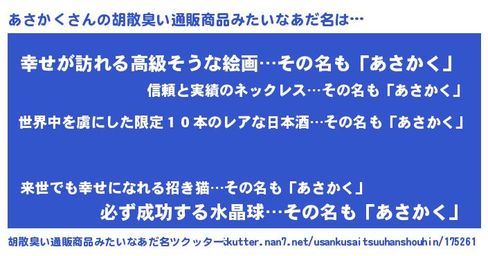 | 恥ずかしいあだ名 | 『あさっちょ』『プリティーあさかく』 |