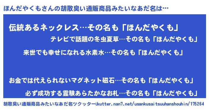 | ポケモン風あだ名 | 『ゼニホン』『ヒホンダヤクモ』 |