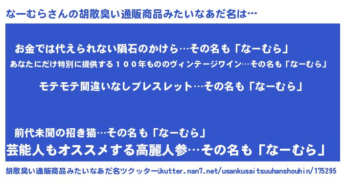 ヘコむあだ名 | 『なーにー』『なーむら(遠い目)』 |