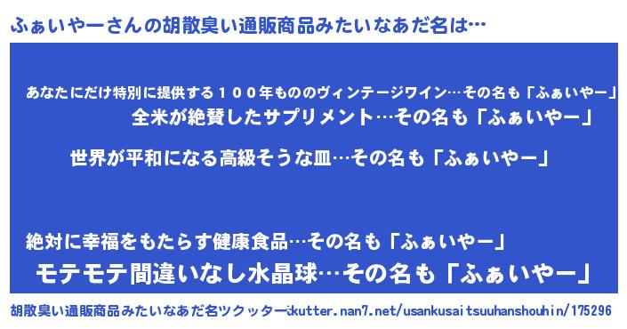 | 意味不明あだ名 | 『ふぁいやーフォーエバー』 |