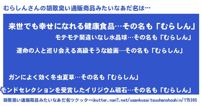 | 意味不明あだ名 | 『むらしんフォーエバー』『自称むらしん』 |