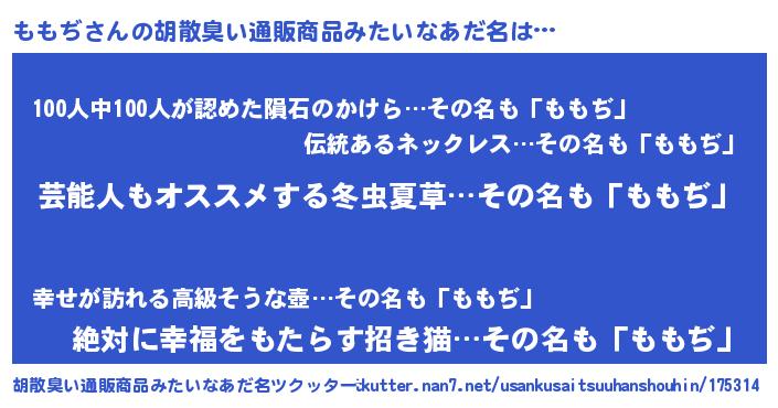 | 意味不明あだ名 | 『自称ももぢ』『眠気覚ましガムももぢ味』 |