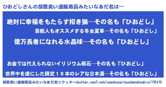 | 意味不明あだ名 | 『ペロリンひおどし』『永久保存ひおどし』 |