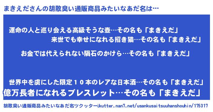 | ヘコむあだ名 | 『なまこ酢』『まきにゅー』『まきお』 |