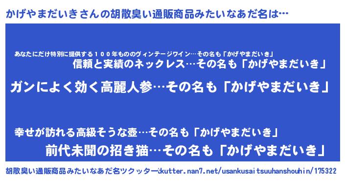 | 欧米人風あだ名 | 『ケンブリッジかげやまだいき』 |