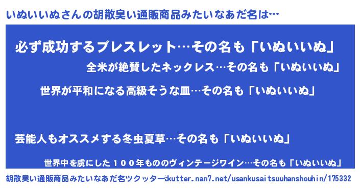 | 男性向けラノベタイトル風あだ名 | 『やはりいぬいいぬの青春ラブコメはまちがっている 』 |