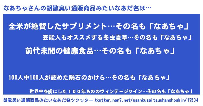 なあちゃさんの胡散臭い通販商品みたいなあだ名をツクッター!