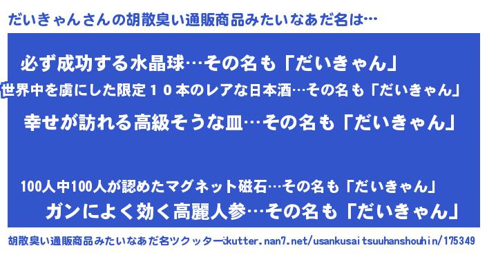 | ヘコむあだ名 | 『つくし』『だいにー』『だい太郎』 |