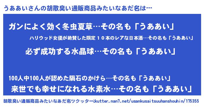 | 恥ずかしいあだ名 | 『プリティーうああい』『うあちん』 |