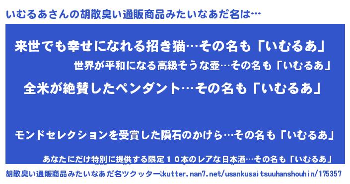 | 意味不明あだ名 | 『とにかく怪しいいむるあ』 |