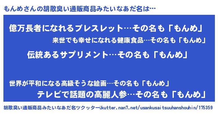 | 意味不明あだ名 | 『とにかく怪しいもんめ』『自称もんめ』 |