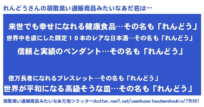 | ヘコむあだ名 | 『れんっちょ』『れんどう(笑)』 |