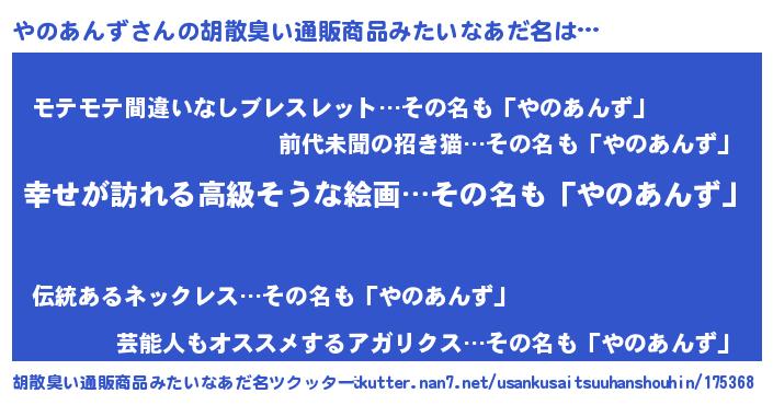 | 肩書あだ名 | 『やのあんず総理大臣』『やのあんず中将』 |