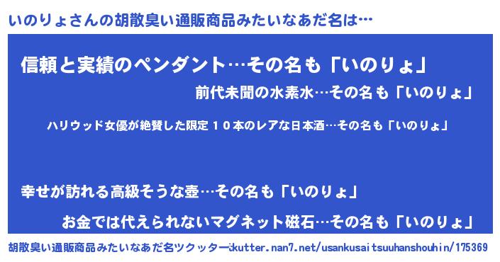 | 意味不明あだ名 | 『住所不定無職いのりょ(68歳)』 |