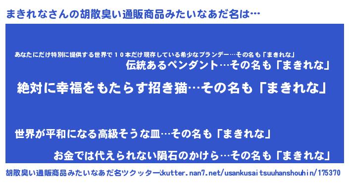 まきれなさんの胡散臭い通販商品みたいなあだ名をツクッター!