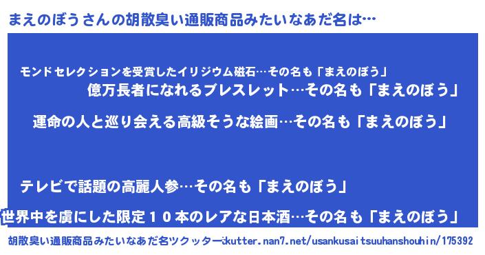 まえのぼうさんの胡散臭い通販商品みたいなあだ名をツクッター!