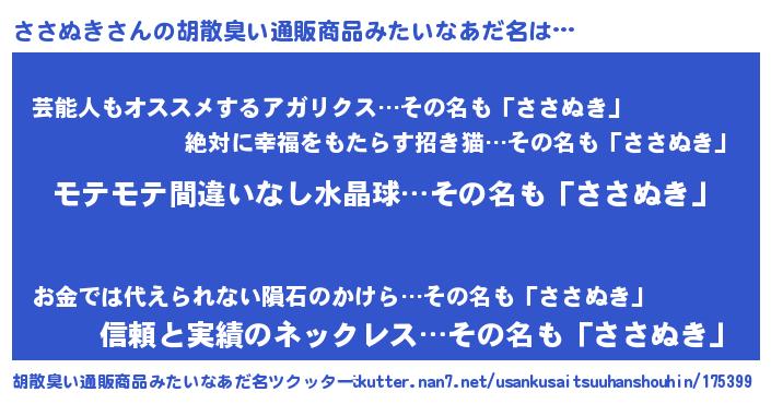 | ヘコむあだ名 | 『ささにゅー』『ささっぺ』『豆乳』 |