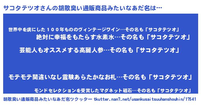 | 意味不明あだ名 | 『自称サコタテツオ』 |