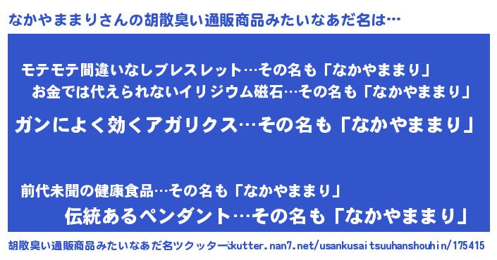 | 意味不明あだ名 | 『自称なかやままり』 |