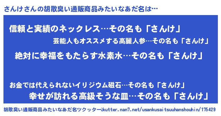 | ヘコむあだ名 | 『さんけ(遠い目)』『さんを』『牛乳』 |