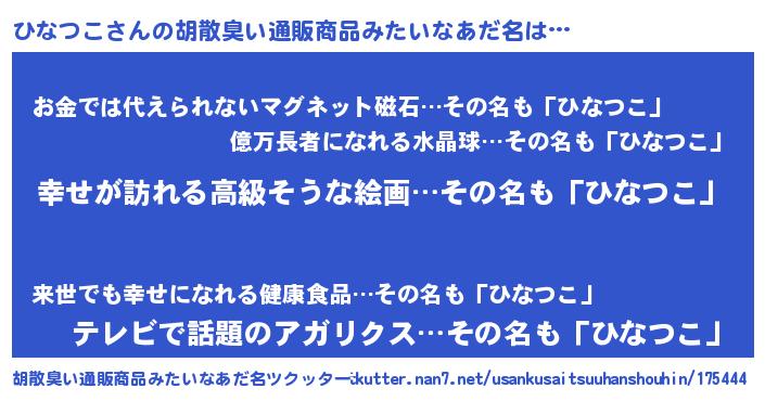 | ファンタジー風あだ名 | 『エターナルヒナツコー』『クインヒット』 |