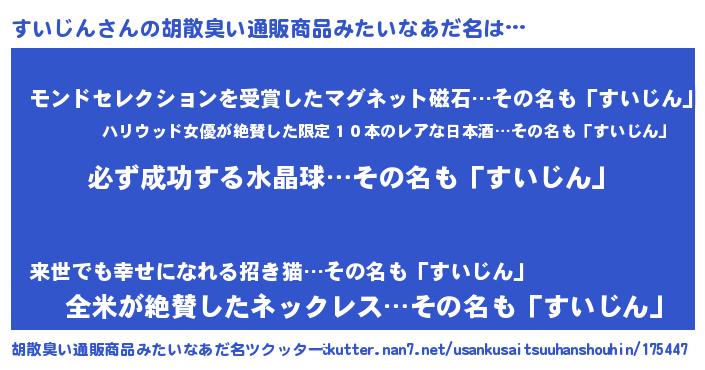 | ヒーロー風カッコイイあだ名 | 『スーパースイジン』『黄金騎士スイ』 |