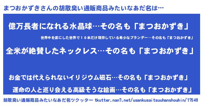 | ポケモン風あだ名 | 『マツキング』『ヒマツオカズキ』 |