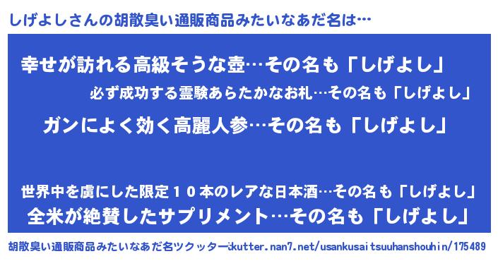| ピコ太郎風あだ名 | 『ピシ三郎』『シゲ二郎』『シコ次郎』 |