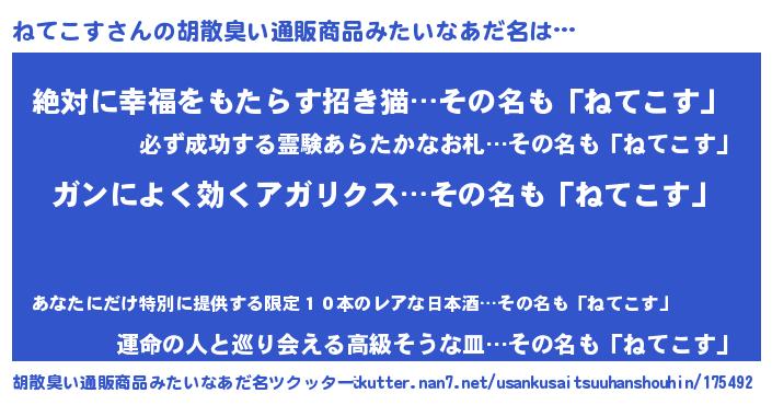 | ヘコむあだ名 | 『ねてこす(笑)』『つくし』 |
