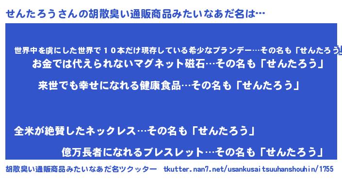 | ヘコむあだ名 | 『せんたろう(笑)』『せんにゅー』 |