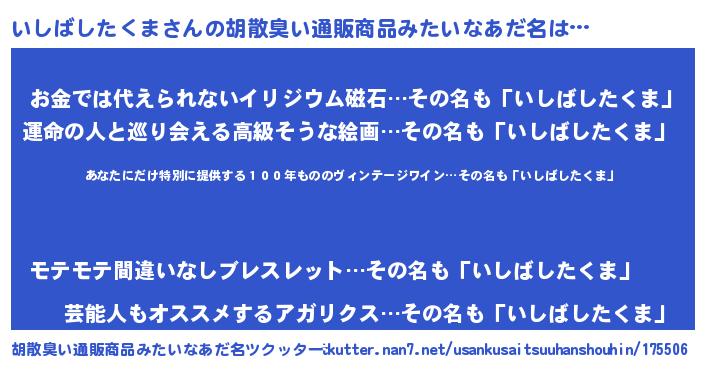 | 意味不明あだ名 | 『住所不定無職いしばしたくま(10歳)』 |
