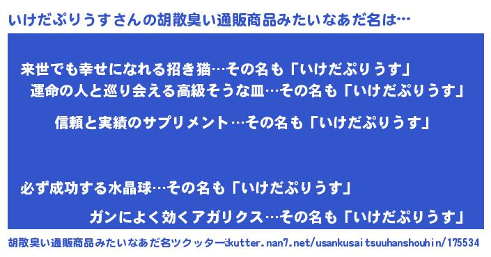 | 男性向けラノベタイトル風あだ名 | 『イケダプリウススレイヤー』 |