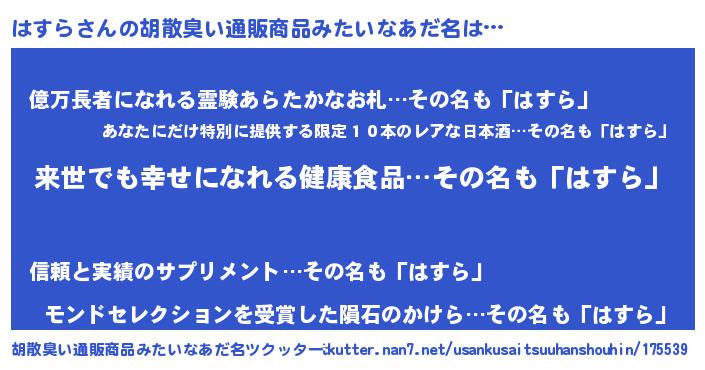 | 欧米人風あだ名 | 『ダルビッシュはすら』『マイケルはすら』 |