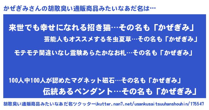 | ヘコむあだ名 | 『かぜもー』『かぜぎみ(小並感)』 |