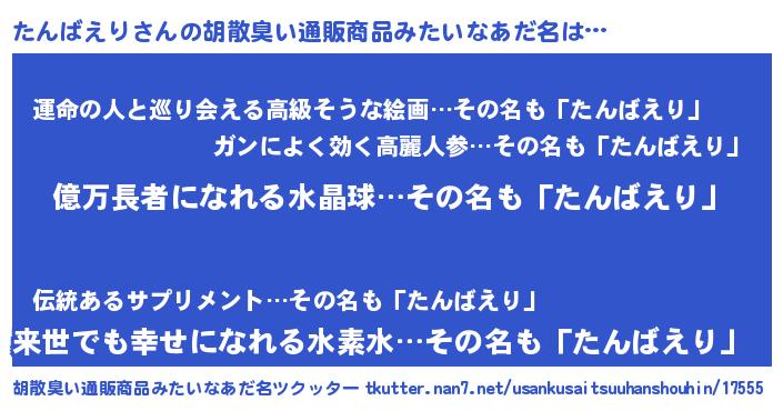 | ヒーロー風カッコイイあだ名 | 『スーパータンバエリ』『ネオタンバエリ』 |