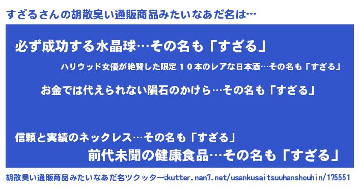 | ヘコむあだ名 | 『すざっふぃ~』『すざる(小並感)』 |