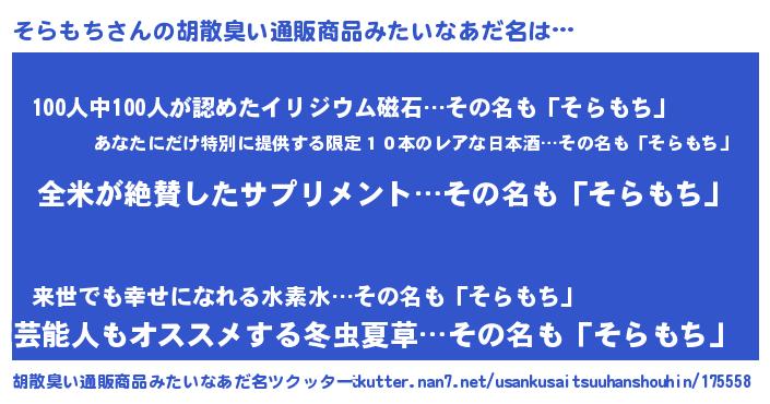 | 意味不明あだ名 | 『とにかく怪しいそらもち』 |