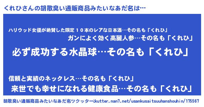 | ヘコむあだ名 | 『くれにゅー』『くれひ(爆)』 |