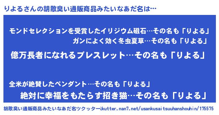 | 意味不明あだ名 | 『ペロリンりよる』『なめこ科りよる属』 |