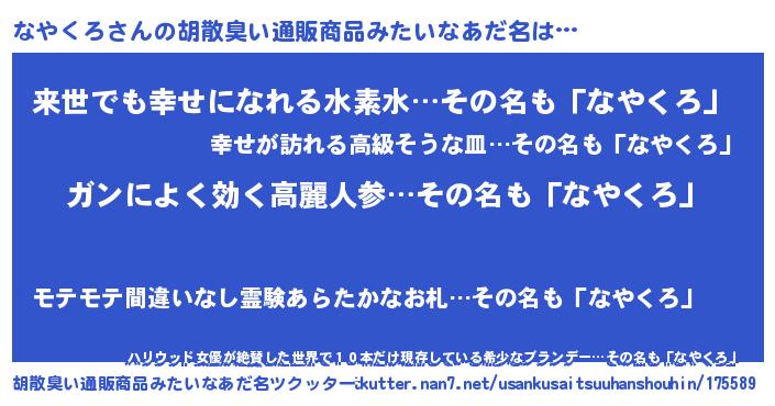 | 意味不明あだ名 | 『自称なやくろ』『永久保存なやくろ』 |