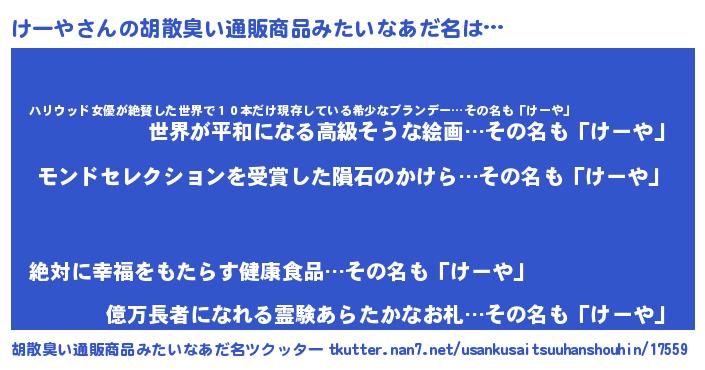 | ヘコむあだ名 | 『けーもー』『酢こんぶ』『けー太郎』 |